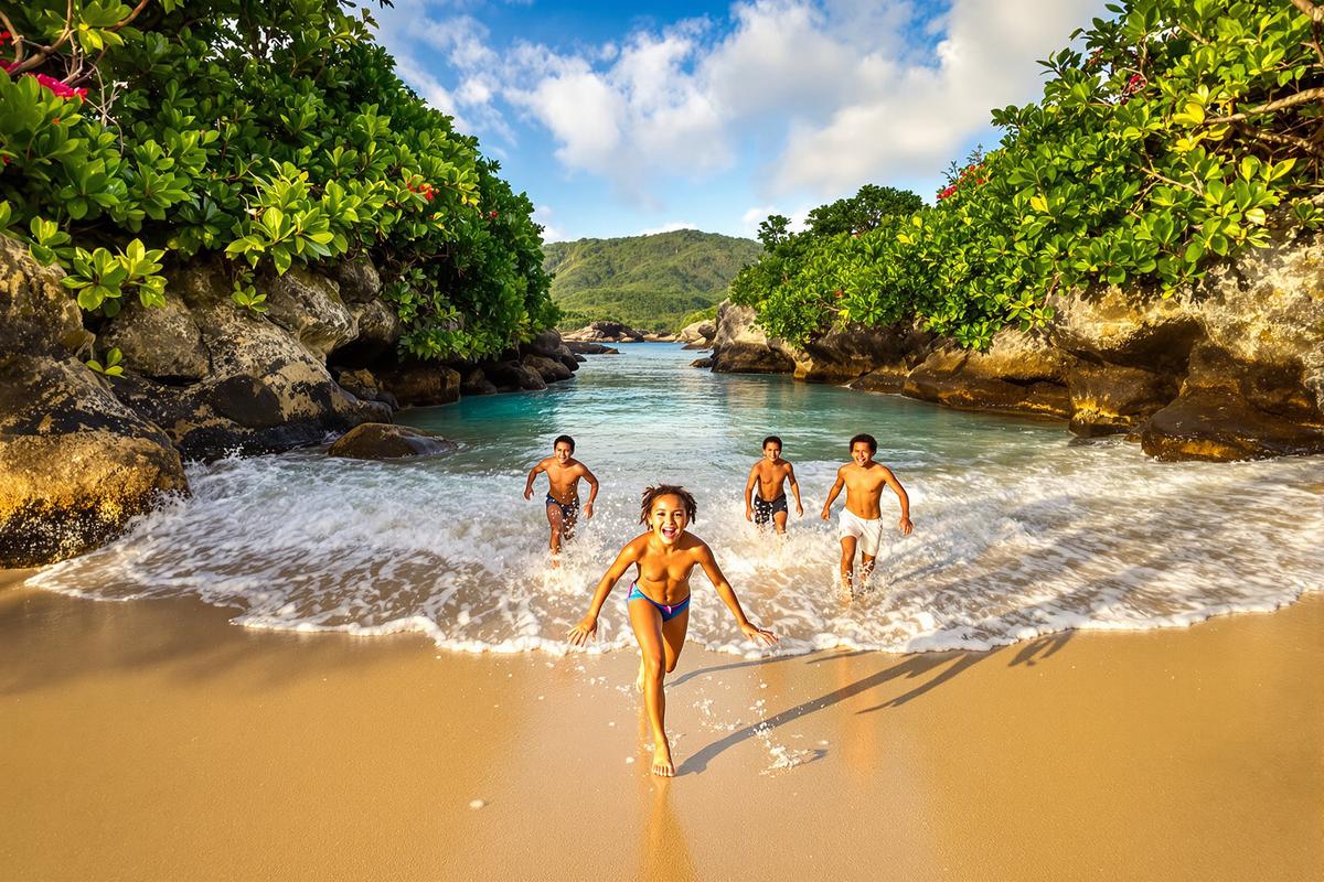 La baie est souvent adaptée aux enfants grâce à ses eaux peu profondes près du rivage. Surveillez en permanence et équipez les plus jeunes de gilets adaptés si nécessaire. Apportez chaussures d’eau, chapeau, eau et snacks. Prévoyez une serviette et un parasol pour l’ombre limitée. Achetez sur place auprès des petits stands locaux si besoin.